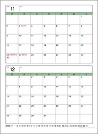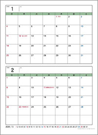 ・卓上カレンダー2ヶ月分を一枚に |